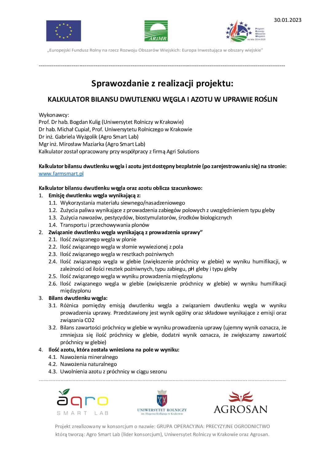 „Europejski Fundusz Rolny na rzecz Rozwoju Obszarów Wiejskich: Europa inwestująca w obszary wiejskie” Nazwa programu: Program Rozwoju Obszarów Wiejskich na lata 2014–2020, Działanie 16 „Współpraca”. Projekt realizowany jest w konsorcjum o nazwie: GRUPA OPERACYJNA: PRECYZYJNE OGRODNICTWO którą tworzą: Agro Smart Lab (lider konsorcjum), Uniwersytet Rolniczy w Krakowie oraz Agrosan
