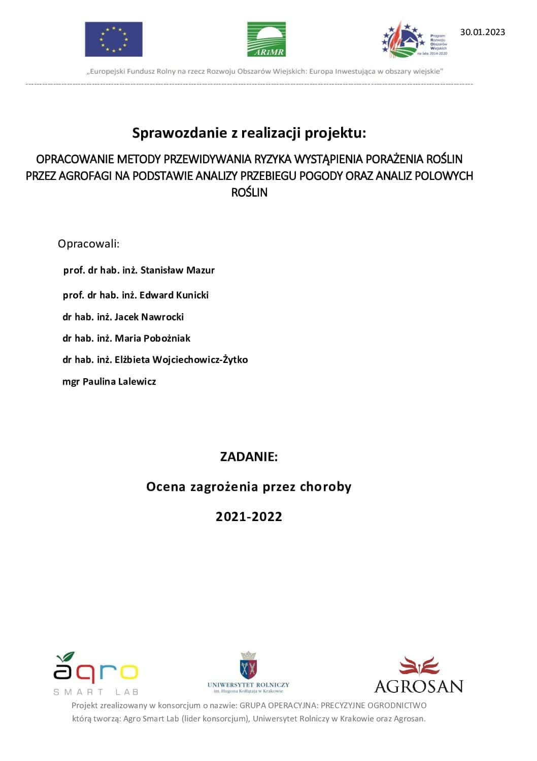 - Opracowanie systemu informowania o wystąpieniu infekcji chorobowych w uprawach polowych i pod osłonami na podstawie matematycznych modeli chorobowych oraz rzeczywistych warunków klimatycznych