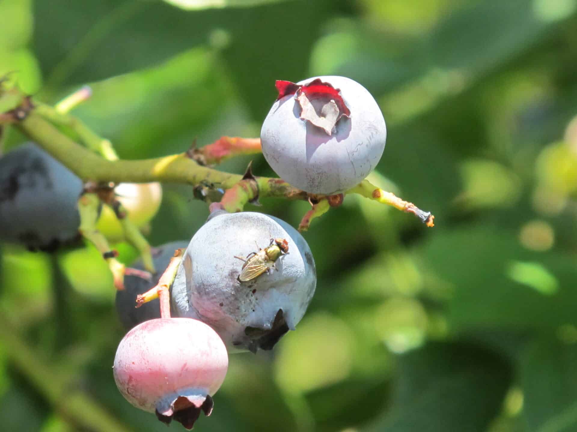 • Zwiększenie częstotliwości zbioru owoców – zbiór należy wykonać jednorazowo lub przeprowadzać go co 3–4 dni, aby nie dochodziło do przejrzewania owoców, które są atrakcyjne dla muchówek.